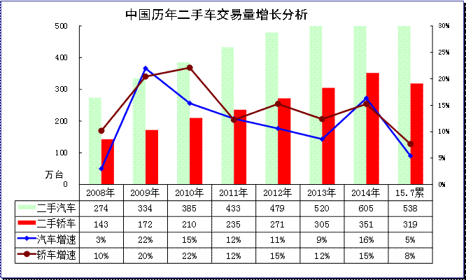 5、2015年汽車二手車銷量平穩增長