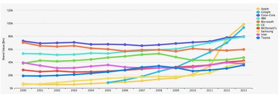 按照慣例,Interbrand公布了一年一度的全球百大品牌金榜。但與慣例非常不同的,蟬聯十三屆冠軍的可口可樂竟然被拉下王座,取而代之的是我們熟悉的,6 年前毅然拋棄Computer,改為單名一個字的品牌Apple。