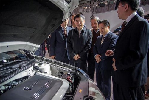 10月19日,工信部部長(zhǎng)苗圩親臨車展現(xiàn)場(chǎng),并蒞臨一汽-大眾展臺(tái)。在一汽集團(tuán)副總經(jīng)理吳紹明的陪同下,苗圩參觀了大眾品牌藍(lán)驅(qū)、奧迪品牌混合動(dòng)力等多項(xiàng)領(lǐng)先的環(huán)保技術(shù)和產(chǎn)品,并對(duì)一汽-大眾自主研發(fā)的新能源車—開利電動(dòng)車給予了充分的肯定。