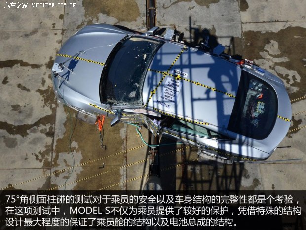 之前TESLA MODEL S在NHTSA(美國高速公路安全協會)進行了碰撞測試,最終拿到了五星的成績,這個結果讓埃隆?馬斯克有點自我膨脹,不管怎樣,MODEL S在各項碰撞測試中對假人的保護以及電池的狀態還是值得稱道的。下面我們通過當時碰撞的情況來看看這款車在被動安全方面表現如何。