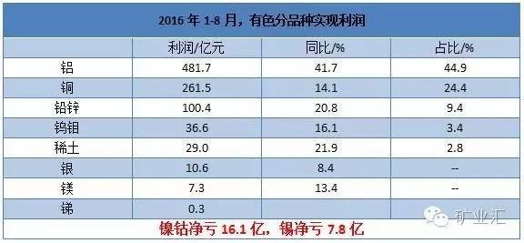 2015年礦業(yè)行業(yè)最不景氣的一年,可是2016年冰凍的礦業(yè)行業(yè)開始遇暖融化,鋁扭虧為盈,鉛鋅迎來了連續(xù)漲價,有色金屬行業(yè)前景一片大好,可是在其他金屬行業(yè)欣欣向榮之時,鎳鈷2016年1-8月份虧了16.1億元。