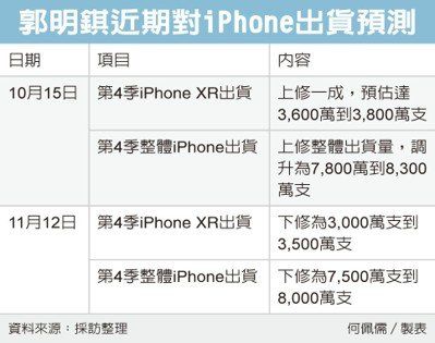 著名蘋果產(chǎn)業(yè)鏈研究員、天風(fēng)國際證券分析師郭明錤12日晚間研究報告,將其對蘋果iPhone XR智能手機的出貨量預(yù)期下調(diào)了3000萬部。iPhone XR是蘋果今年推出的新款智能手機中價格最低的機型,這款新機是在10月份發(fā)布的。