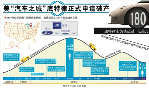 12月4日,美國百年汽車城底特律在5個月前遞交的破產申請正式獲得法官裁決通過,180多億美元的債務也使得底特律破產成為美國歷史上債務規模最大的一起城市破產案。