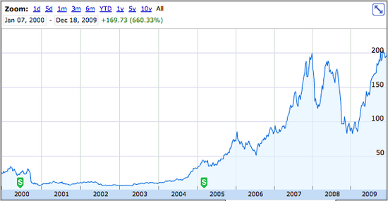 2008年,蘋果的未來再次遭受分析人士的懷疑,擔心消費者負買不起iPhone、iPod或Macintosh等蘋果的產(chǎn)品。不過事實證明這一切的憂慮是多余的,在2000年代的10年里蘋果股價再次增長了660.33%。