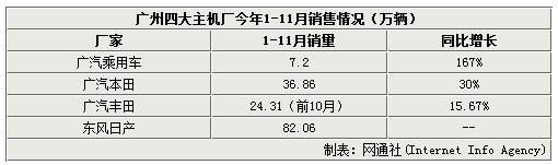 廣州汽車(chē)產(chǎn)業(yè)的今年的迅速回升還得歸功于廣州四大整車(chē)產(chǎn)業(yè)的迅速回升。今年前11個(gè)月,東風(fēng)日產(chǎn)(襄樊、鄭州也有生產(chǎn))2013年的累計(jì)銷(xiāo)量已達(dá)820,592輛,距離90萬(wàn)輛的年度銷(xiāo)量目標(biāo)僅剩8萬(wàn)輛不到,這一數(shù)字早已超過(guò)2012年全年77.3萬(wàn)輛的全年銷(xiāo)量,也超過(guò)未受到不良狀況影響的2011年的同期最高水平;廣汽本田1-11月累計(jì)銷(xiāo)量368,555輛,同比增長(zhǎng)30%;廣汽豐田前10月銷(xiāo)量同比增長(zhǎng)15.67%至24.31萬(wàn)輛;另外值得一提的是,廣汽乘用車(chē)前11個(gè)月的銷(xiāo)量已超7.2萬(wàn)輛,同比增幅達(dá)167%。
