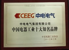 中電電氣榮獲中國電器工業十大知名品牌