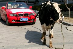 百萬寶馬修車遭掉包 車主租奶牛拉車維權(quán)(圖)