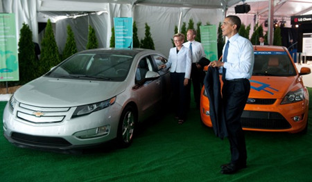 3月15日,奧巴馬總統參觀了位于芝加哥近郊的阿貢國家實驗室,并發表講話,敦促國會批準設立總額為20億美元的能源安全信托基金,以支持新能源汽車的研發,目標是使車輛不再需要石油,減少美國對石油的依賴,促進經濟發展。