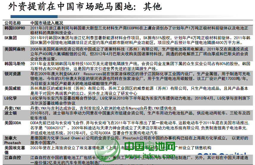 【本網訊】中國電池網-中國電池雜志記者發(fā)自北京報道 進入2013年來,跨國巨頭在中國新能源市場特別是電池行業(yè)布局動作頻繁,外資跑馬圈地的新聞頻頻亮相。