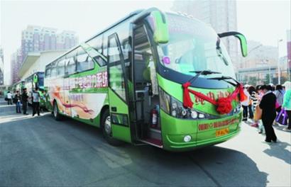 5月8日,4臺裝配電容型鋰離子電池的純電動高速長途客車在朝陽至錦州世博園專線投入運營,這是我省正式開通的首條純電動客車高速長途線路。圖為4臺純電動客車在朝陽準備發車前往錦州世博園。