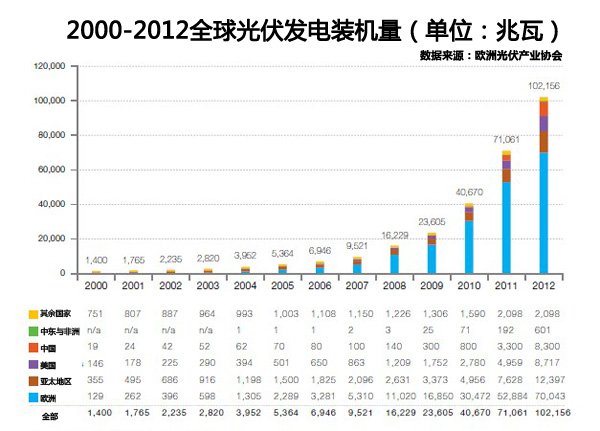 2011年,中國向歐盟出口了總價值210億歐元(約合1665億元人民幣)的光伏產品,出口量占中國光伏制造業總產量的70%,占中歐貿易總額的7%左右。足以證明中國光伏產品的主要流向。不過,歐盟的“反傾銷”可能只是起到“最后一根稻草”的作用。在此之前,美國也有類似措施,最重要的還是中國國內的光伏產品產能早就過剩,許多企業在兩三年前就開始舉步維艱。而在今年3月20日,中國昔日的光伏標桿企業——無錫尚德宣布破產重整。