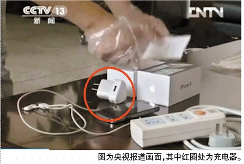 新京報(bào)記者注意到,從央視播出的畫面來看,死者使用的充電器并非蘋果內(nèi)地原裝iPhone手機(jī)充電器。