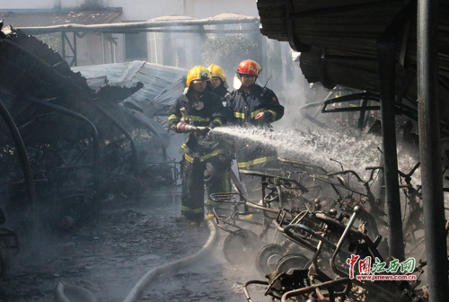 江西吉安一制衣廠車棚起火 300余輛電動車被燒毀