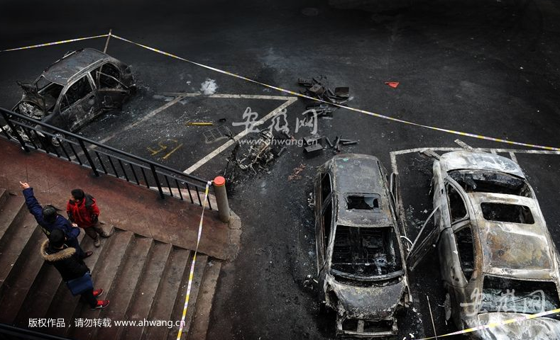 安徽合肥一小區充電電動車突起火 殃及兩輛轎車被燒毀