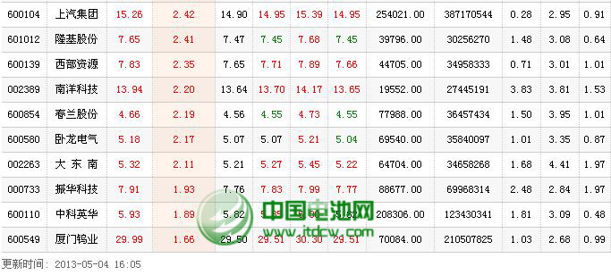 中國電池網(wǎng)-中國電池雜志2013年重點關注與研究鋰電概念上市公司一覽表(50家)