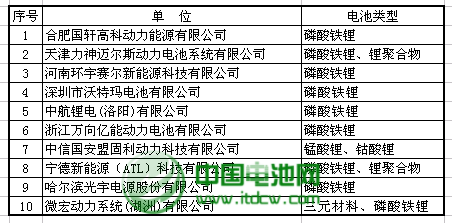 2012-2013年鋰離子動力電池主流品牌表單(10家)