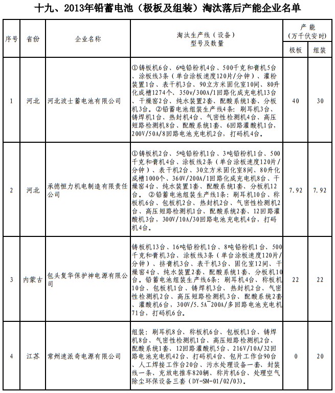 隨著國家加大對電池產業落后產能企業的整治力度,一大批小企業和污染嚴重企業已在多次整治中,紛紛關門倒閉,近日工信部網站發布了一批近期淘汰落后的企業名單。