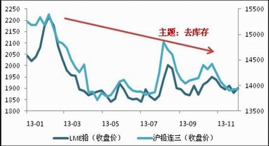 在市場主題的更替之際,去庫存成為了貫穿始終的主旋律,鉛價整體呈現向下的走勢。國內滬鉛期價基本跟隨倫鉛走勢,年中鉛價一度回落至14000 元/噸下方運行。