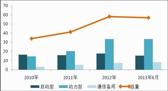 次級領域:1)通信備用電池。該類蓄電池主要為移動信號基站的通信設備提供緊急端點情況下的臨時供電保證,4G 網絡又方興未艾,預計該類電池在2014年總體需求較為平穩。2)汽車啟動用電池。由于我國汽車龐大的產銷量及保有量,對電池的新興需求和更換需求都具有極大的剛性,預計2014 年該領域對鉛酸蓄電池的需求將保持兩位數的增長。3)動力用電池。該類電池主要為交通工具提供動力,如電動摩托車、電動自行車等。目前我國電動自行車保有量已經超過2 億輛,由于該領域對蓄電池更換需求較為龐大,預計該領域在2014 年仍將全面推動蓄電池需求量的增加,增速預計大于5%。