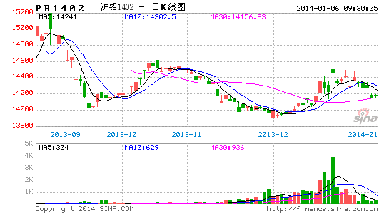 2014 年1-2 月份,由于產業鏈資金面得到一定程度緩解,加之冬季寒冷天氣尚未完全結束,北方局部地區鉛精礦供應仍存在一定偏緊格局,在1-2 月鉛價將處于偏強格局,或將依托14000 元/噸一線走出一定幅度的反彈行情,建議投資者在該時間段內以逢低短多操作為宜,也可以在14000 元/噸附近布局中長線多單,目前點位14500-14600 元/噸,可在14500 元/噸附近分批止盈離場。