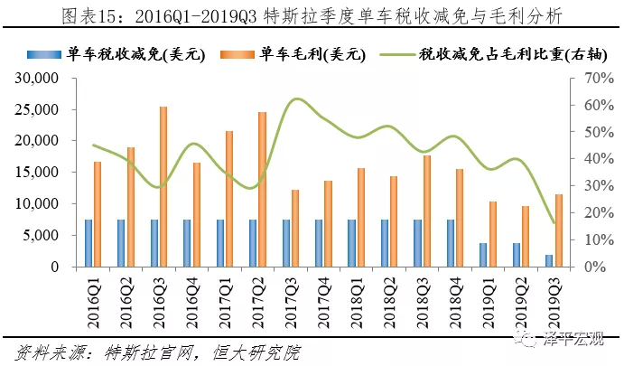 據(jù)特斯拉財報披露,2019Q3公司汽車銷售毛利率21.78%,單車毛利11525.77美元,稅收減免占毛利比重16.27%,稅收減免取消后,預(yù)計降低毛利率3.54個百分點。