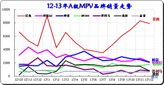 MPV市場的GL8始終一枝獨秀,近幾個月銷量也攀升突破7000太水平。但12月GL8推出年型車同時收縮銷量實現利潤的合理配置。威霆、維亞諾的表現始終不溫不火。