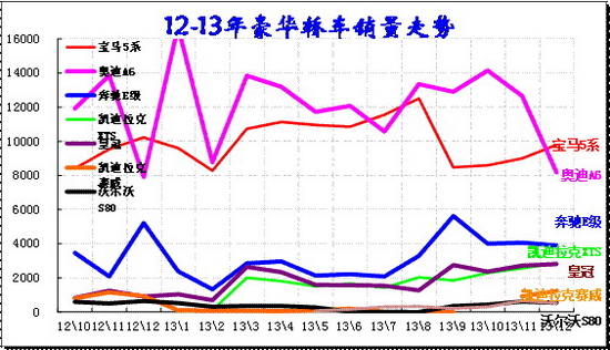 奔馳、奧迪、寶馬等豪車三巨頭在中國競爭激烈,豪車三強面臨同樣的歐洲負增長壓力,中國市場的增量成為最重要的目標。由于豪車三巨頭在中國的地位拼爭超級激烈,奧迪與寶馬的C級車競爭咬合的日益緊密,但新寶馬5系導致價格回升、銷量走勢不強,奧迪A6價格保持很好狀態,零售量也是達到超高水平,只是批發稍有收縮。