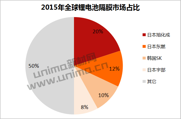 到2015年,伴隨著國(guó)內(nèi)鋰電行業(yè)的強(qiáng)勁需求,國(guó)內(nèi)隔膜企業(yè)迅速擴(kuò)張,已經(jīng)拿下中國(guó)市場(chǎng)半壁江山,并且有進(jìn)一步擴(kuò)張之勢(shì)。
