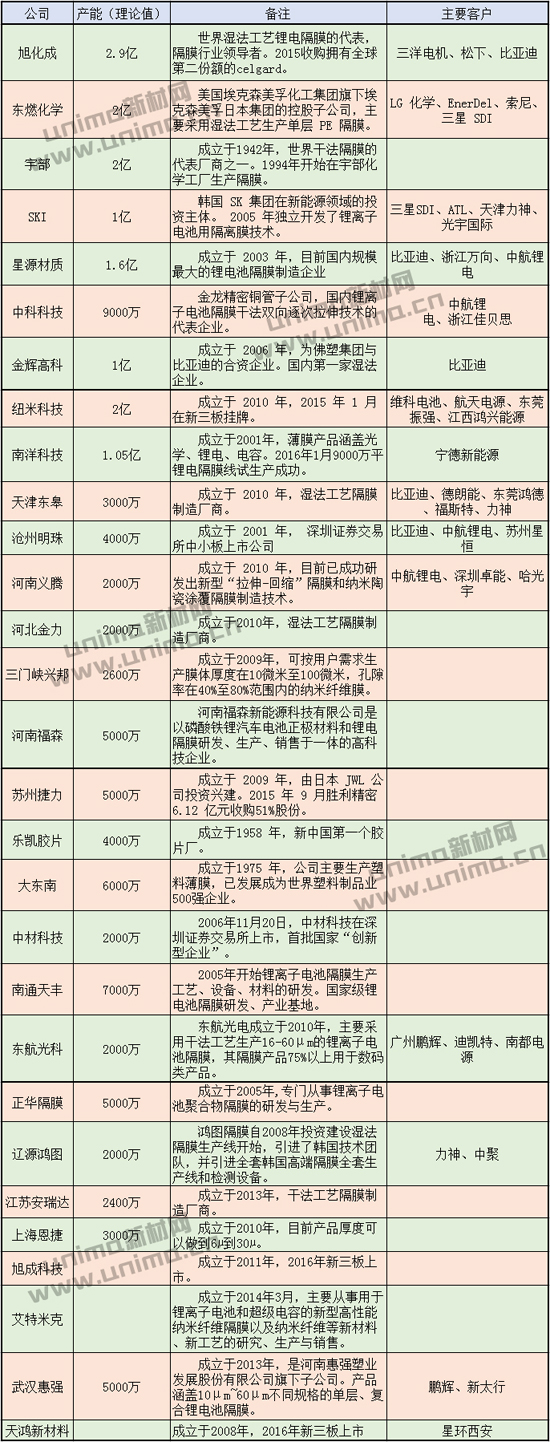 全球部分隔膜企業(yè)訊息如下: