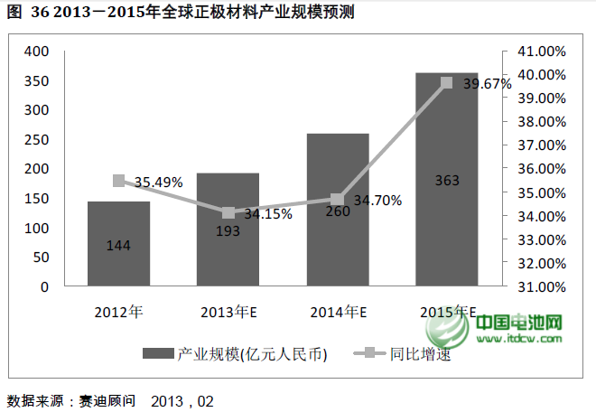 中國電池網(wǎng)-中國電池雜志戰(zhàn)略合作機構(gòu)——賽迪顧問預(yù)計到2013年全球正極材料產(chǎn)業(yè)規(guī)模將達(dá)到193億元人民幣,2015年,新能源汽車的產(chǎn)業(yè)化應(yīng)用將帶動全球鋰離子電池的產(chǎn)業(yè)規(guī)模達(dá)到363億元人民幣。