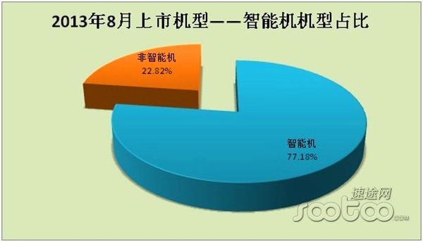2013年8月份,上市新機(jī)型中,智能機(jī)占比達(dá)77.18%