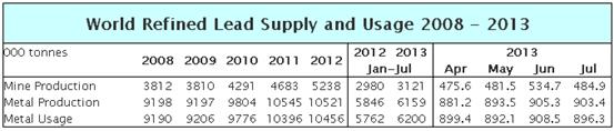 國(guó)際鉛鋅研究小組(ILZSG)本月公布的最新月報(bào)顯示,1-7月全球精煉鉛供應(yīng)短缺41,000噸,而上年同期為供應(yīng)過(guò)剩84,000噸。