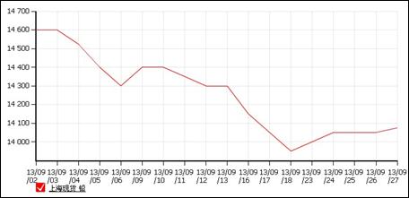 2013年9月份,上海現(xiàn)貨鉛價(jià)在經(jīng)過(guò)8月漲勢(shì)之后,開(kāi)始回吐,由于下游采購(gòu)的低迷,鉛價(jià)無(wú)法保持高位,9月回吐過(guò)程較為慘烈,現(xiàn)貨鉛均價(jià)由月初的 14600元/噸,一路跌至13950元/噸,不過(guò)月末稍微有所反彈,截至29日,上海現(xiàn)貨鉛均價(jià)報(bào)在14075元/噸,累計(jì)下跌525元/噸,跌幅 3.5%。