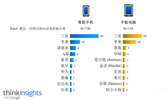 如果上述還不能令我們某些沾沾自喜的企業(yè)信服的話,那么谷歌消費(fèi)者報(bào)告羅列出的消費(fèi)者最近一次購(gòu)買的智能手機(jī)和平板電腦品牌中,中國(guó)企業(yè)中,只有華為的手機(jī) 榜上有名,而我們一直不齒的諾基亞、黑莓、HTC等所謂已經(jīng)沒落和正走向沒落的企業(yè)的產(chǎn)品卻仍被消費(fèi)者選購(gòu)。可見我們的產(chǎn)品和品牌在國(guó)外市場(chǎng)的位置。