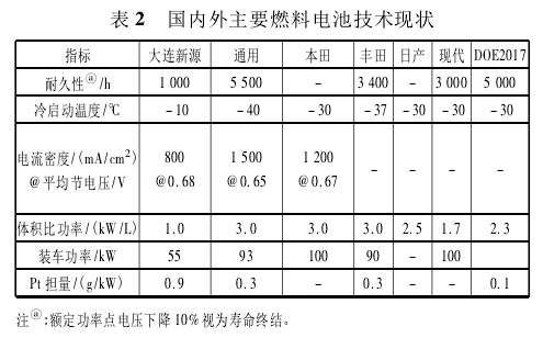 目前,國內(nèi)外燃料電池的技術(shù)現(xiàn)狀見表2。