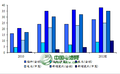 為此,國務院常務會議為加快光伏產業結構調整和技術進步,提出鼓勵企業兼并重組,淘汰落后產能。今年1月7日,2013年全國能源工作會議提出,今年將大力發展分布式光伏發電,全年新增光伏發電裝機1000萬千瓦。這些舉措為光伏產業帶來希望的曙光,行業并購也將加快推進,預計超過1/3甚至1/2的企業將會被兼并重組。若未來各大公司做到整合兼并,則主動削減、關閉部分產能,從而促進多晶硅光伏產品價格提升。