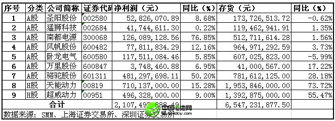 據(jù)統(tǒng)計, A股、港股9家鉛蓄電池企業(yè)2012年凈利達21.07億元,存貨高達65.47億元,存貨量為凈利的3.1倍。