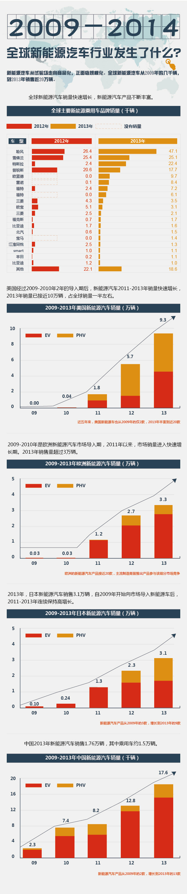 新能源汽車從試驗場走向商品化,正面臨規模化。全球新能源汽車從2009年的幾千輛,到2013年銷售近20萬輛。