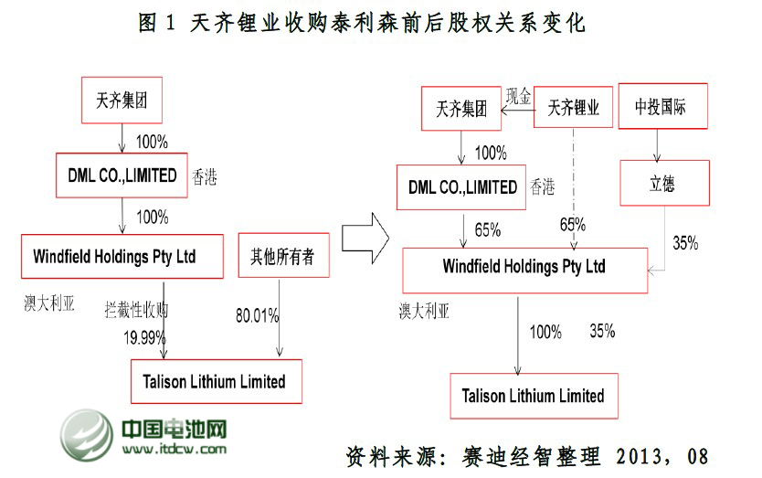 2012年12月,停牌多日的天齊鋰業發布公告稱擬募集不超過40億元購買澳大利亞泰利森65%的股權。天齊鋰業對泰利森的收購首先通過控股股東在澳大利亞設立文菲爾德,然后以文菲爾德為主體來完成對泰利森的收購。在收購泰利森之前,天齊鋰業的競爭對手洛克伍德曾宣布以每股6.5加元的價格現金收購泰利森100%的普通股股權,為防止洛克伍德完成收購后對鋰礦資源的壟斷,天齊鋰業采取攔截型收購方式公開收購泰利森19.99%的股份,成功阻止了洛克伍德的全面收購計劃。