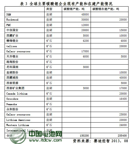 從產能來看,賽迪經智統計了全球主要碳酸鋰企業現有碳酸鋰產能和在建產能,并且預計所有在建產能將在2015年得到完全釋放,屆時碳酸鋰的全球產能將達到40.6萬噸,遠遠高于2015年的19.7萬噸的需求量,甚至高于2020年36.6萬噸的需求量。因此,賽迪經智認為未來相當長的一段時間內,全球碳酸鋰的產能是過剩的。