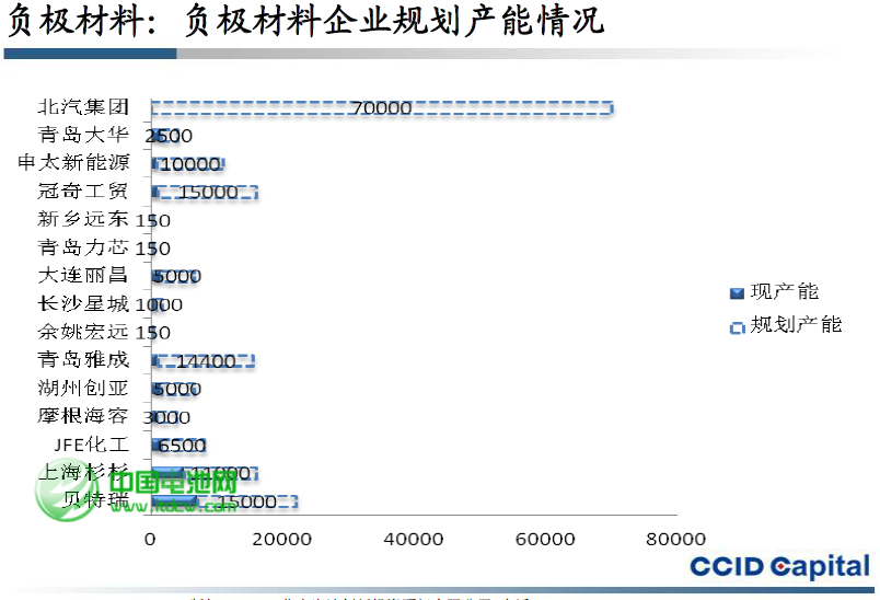 其中中國寶安旗下貝特瑞產能位居第一,2102年產量14400噸。未來幾年北汽集團大手筆布局電池材料,其中負極材料規劃產能為7萬噸。