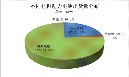 目前電池類型主要為磷酸鐵鋰和三元材料,兩者累計出貨量達3.34Gwh,占比總量的97.66%。對比兩種電池材料的應用領域看,兩者在乘用車、客車、專用車領域均有分布,但磷酸鐵鋰電池主要集中應用于客車、乘用車領域,兩部分電池出貨量分布為1.5Gwh 和1Gwh,均超過1Gwh,占比磷酸鐵鋰電池總量(2.57Gwh)的97%;而三元材料電池受制于政府此前暫停三元鋰電池客車列入新能源汽車推廣應用推薦車型目錄,使得該類型電池主要集中應用于乘用車領域。
