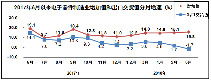 上半年,電子元件及電子專用材料制造業增加值同比增長15.4%。出口交貨值同比增長10.3%。主要產品中,電子元件產量同比增長21.5%。