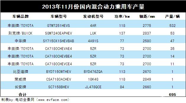 11月份我國國內混合動力乘用車產量695輛,其中插電式混合動力乘用車僅1輛,為比亞迪最新上市插電式混合動力車型“秦”。與純電動汽車市場的大起大落相比,今年以來國內混合動力乘用車各