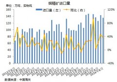 6月中國銅礦砂及其精礦進(jìn)口135萬噸 上半年累計進(jìn)口804萬噸