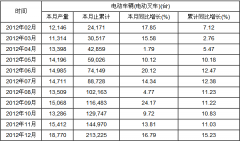 2012年中國電動車輛(電動叉車)產量分月度統計