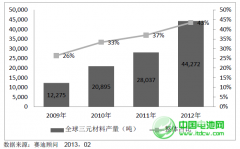 2012年中國三元材料銷售9760噸 占全球22%