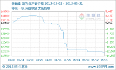2013年5月國內多晶硅行情走勢 跌幅為1.24%