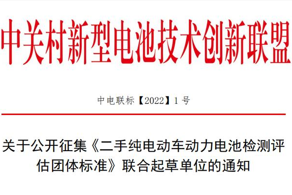 關(guān)于公開征集《二手純電動車動力電池檢測評估團體標準》聯(lián)合起草單位的通知