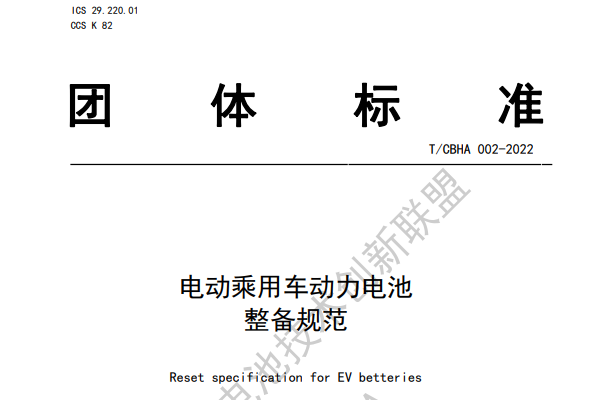 聯(lián)盟團體標準:T/CBHA 002-2022電動乘用車動力電池整備規(guī)范